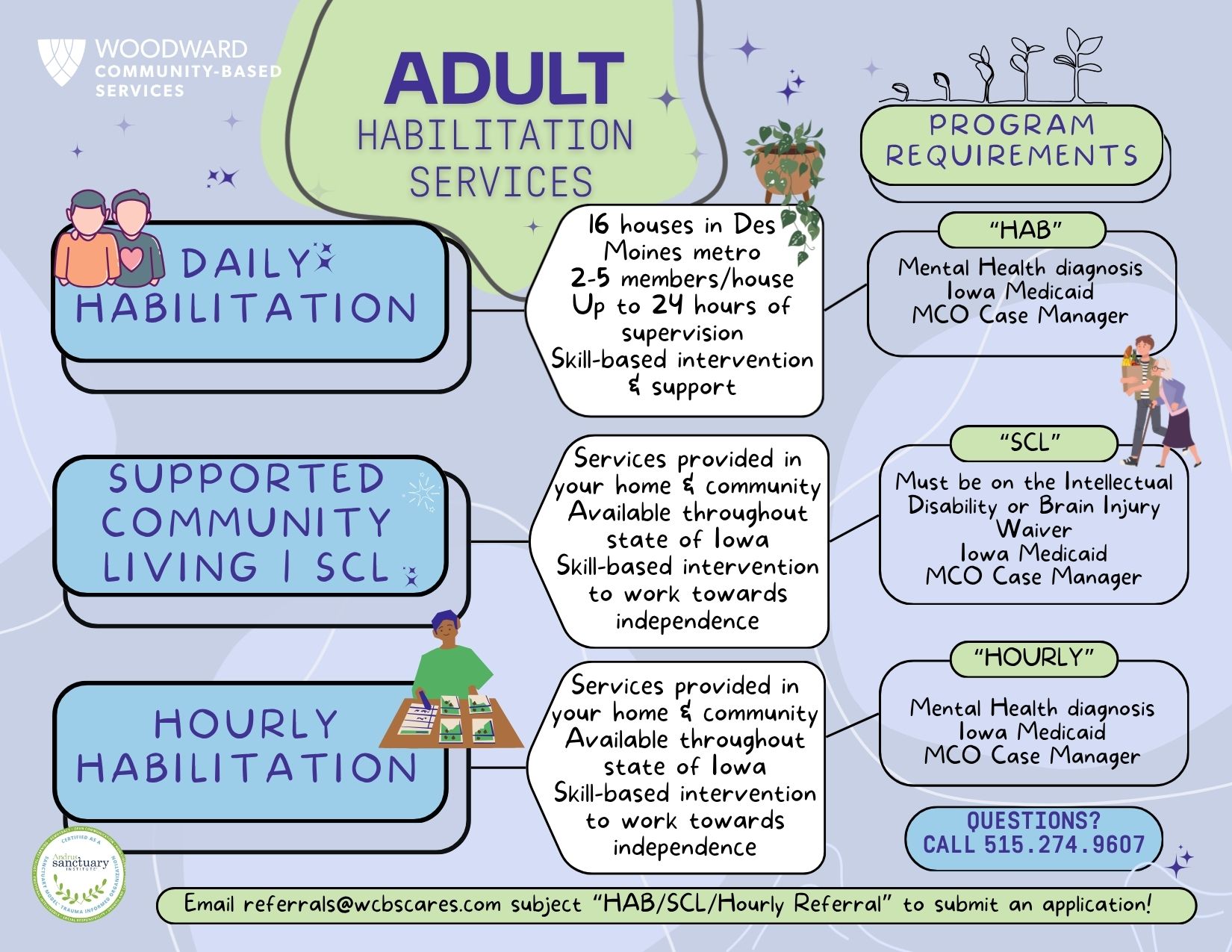 - The SCL program works with individuals on the Intellectual Disability (ID) and Brain Injury (BI) waiver through Iowa Medicaid. SCL members create goals in the individualized care plan meeting with their care team. Services are had in their home or in the community depending on the needs of the member.